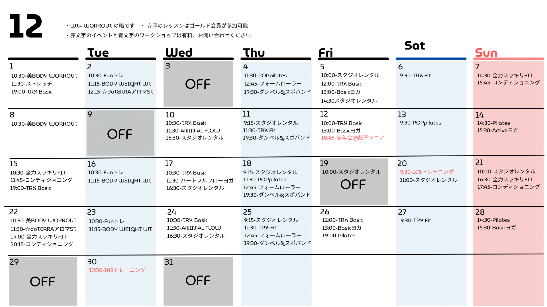 12月レッスンスケジュールをupしました!!