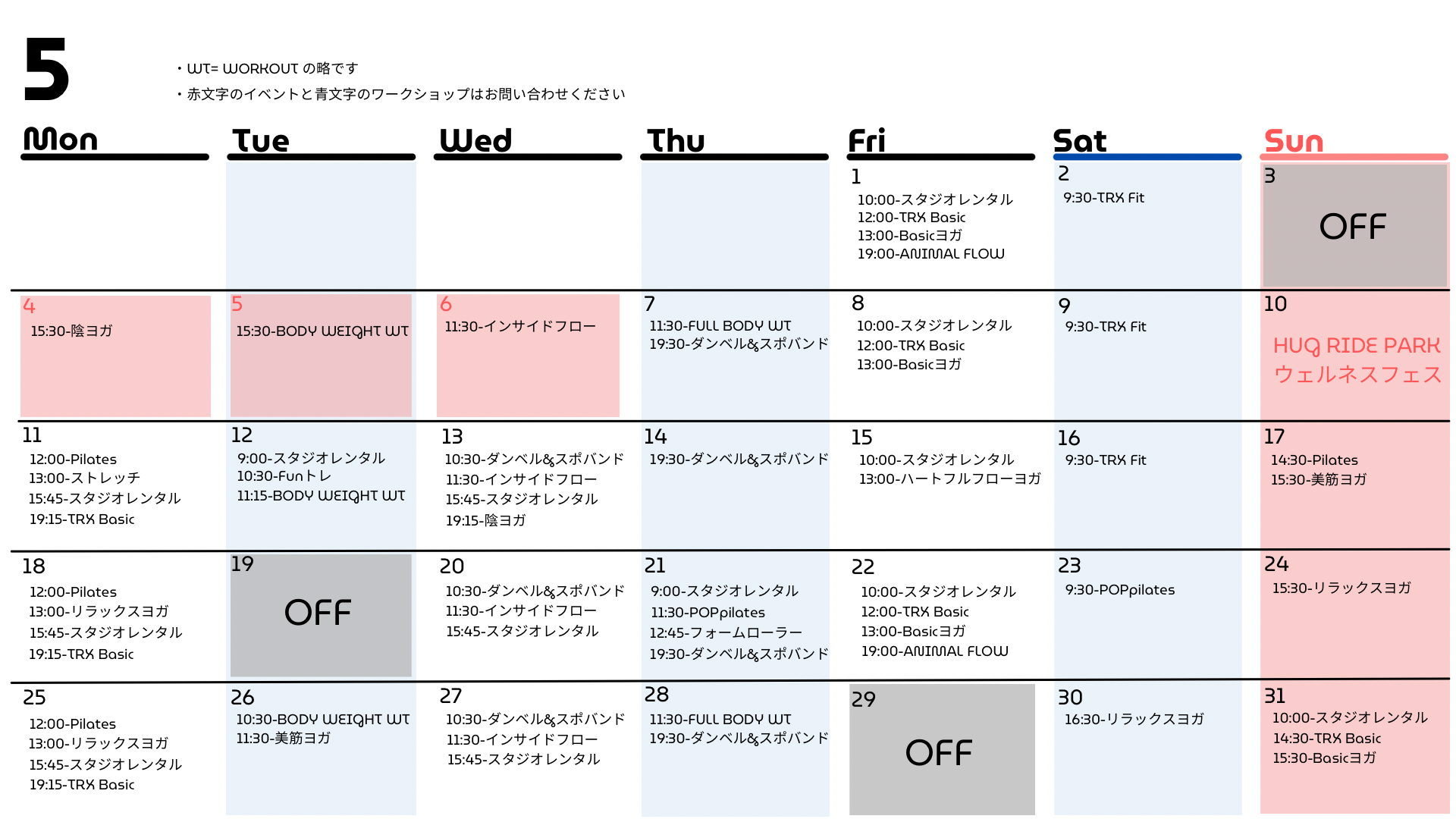 各レッスン、スケジュールをご確認の上、ご参加ください。