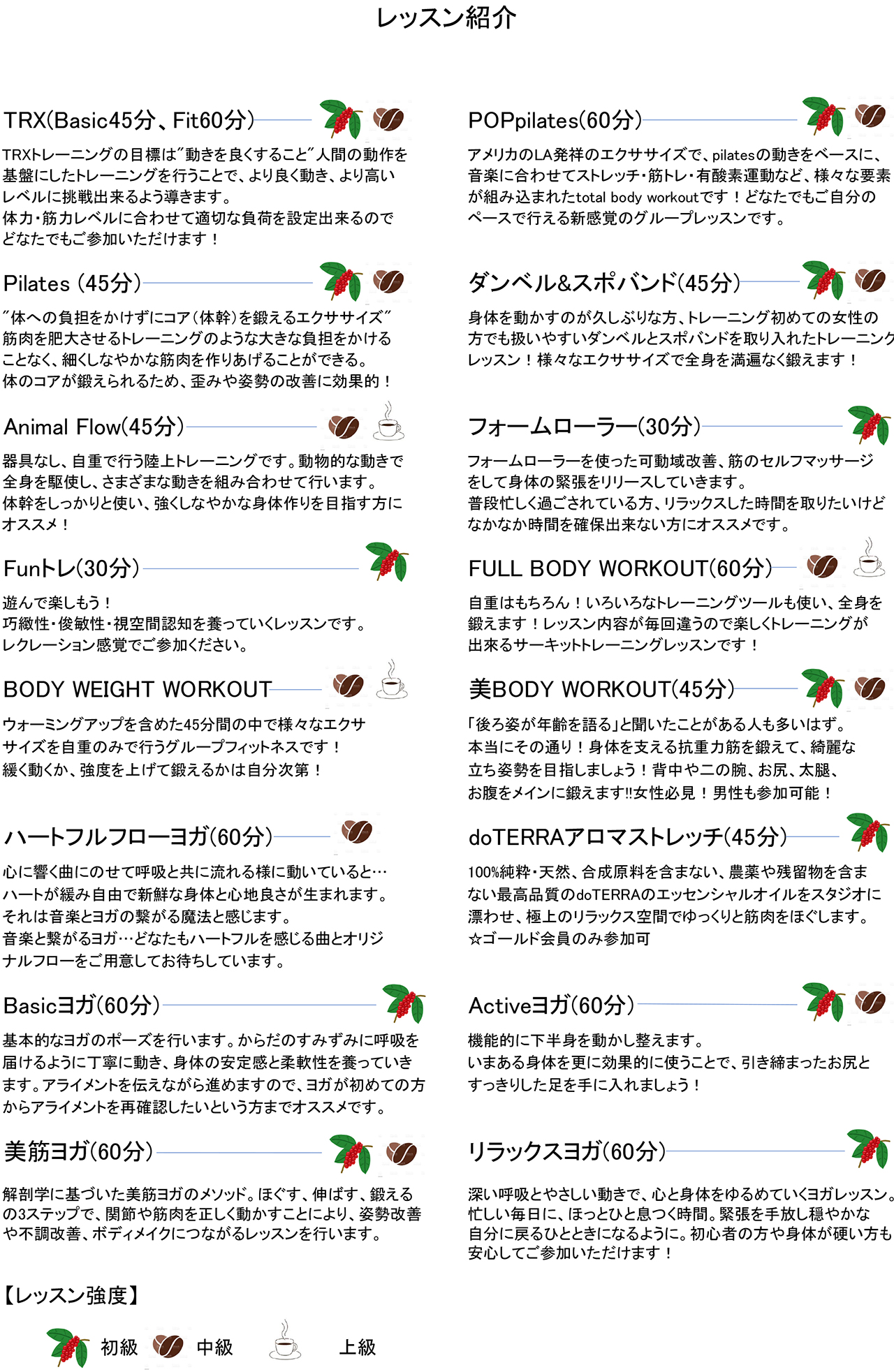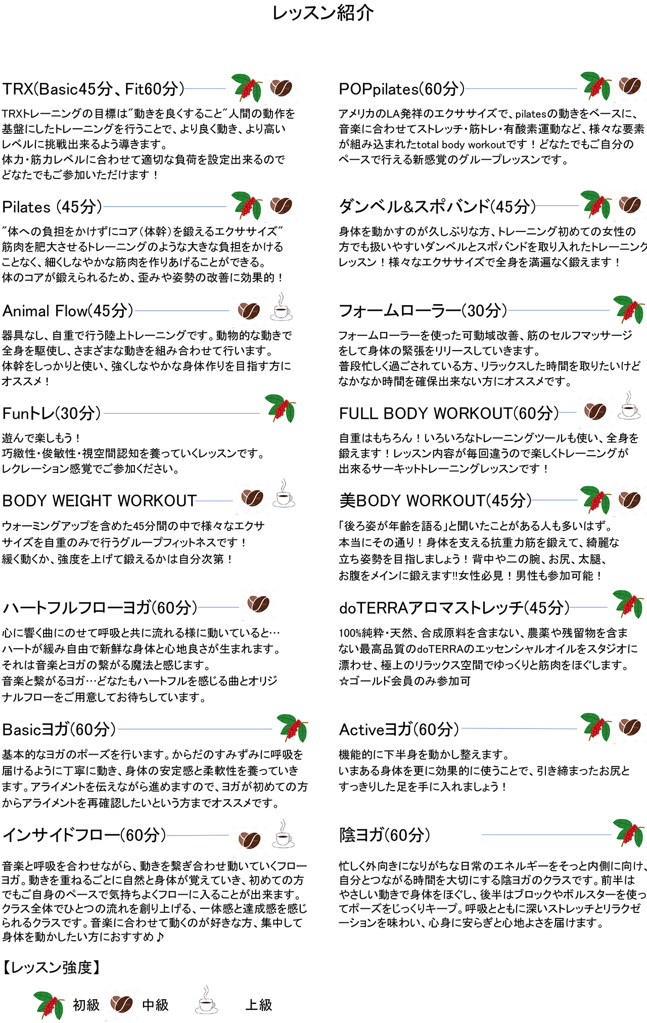 - レッスンスケジュール